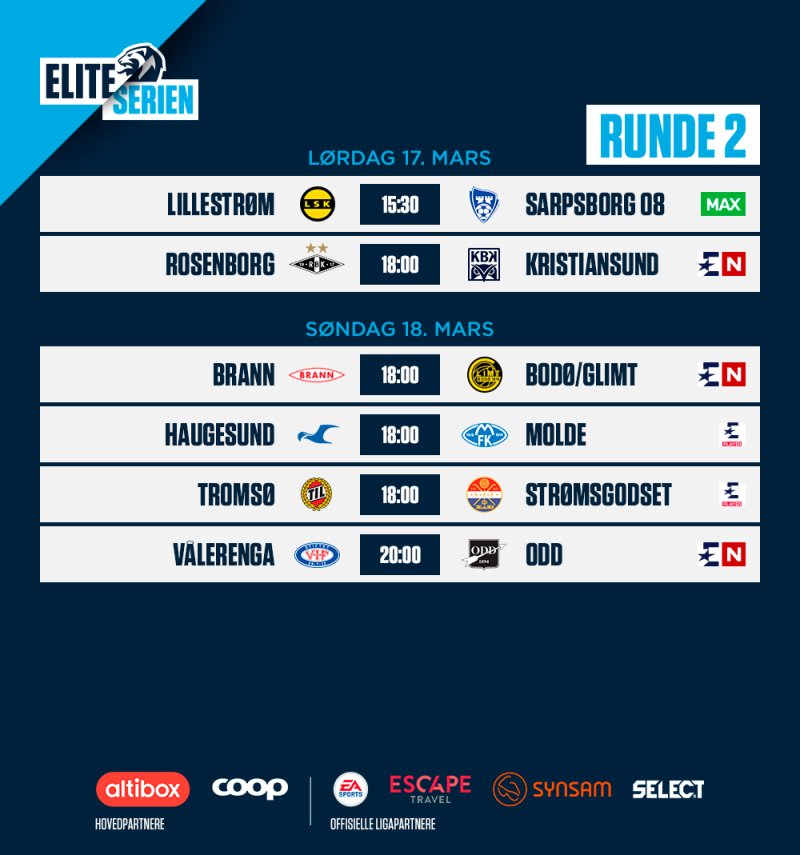 Det er klart for runde 2 av Eliteserien 2018!