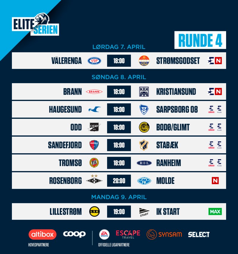 Det er klart for runde 4 av Eliteserien 2018!